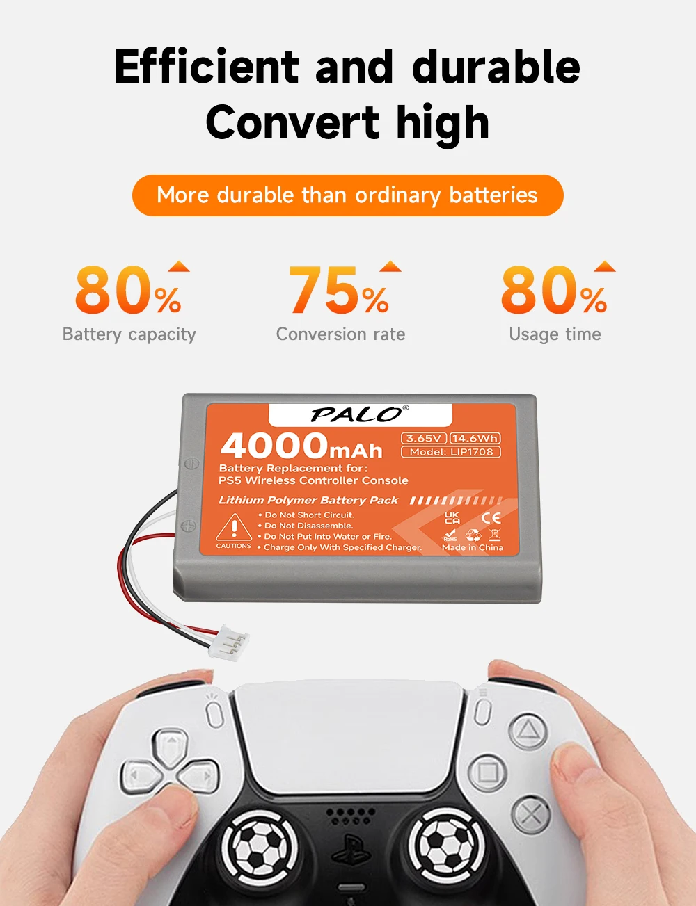 Is your PS5 DualSense controller dying after just 2-3 hours of gameplay? Upgrade your gaming experience with this upgraded 4000mAh battery – more than double the capacity of the original 1560mAh battery to enjoy 8-12 hours of uninterrupted gameplay on a single charge.