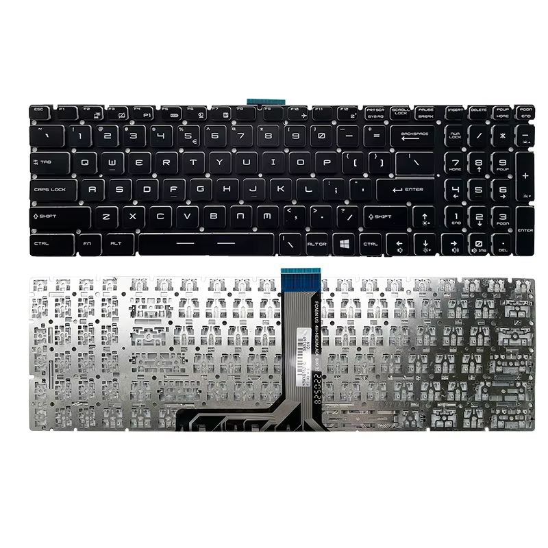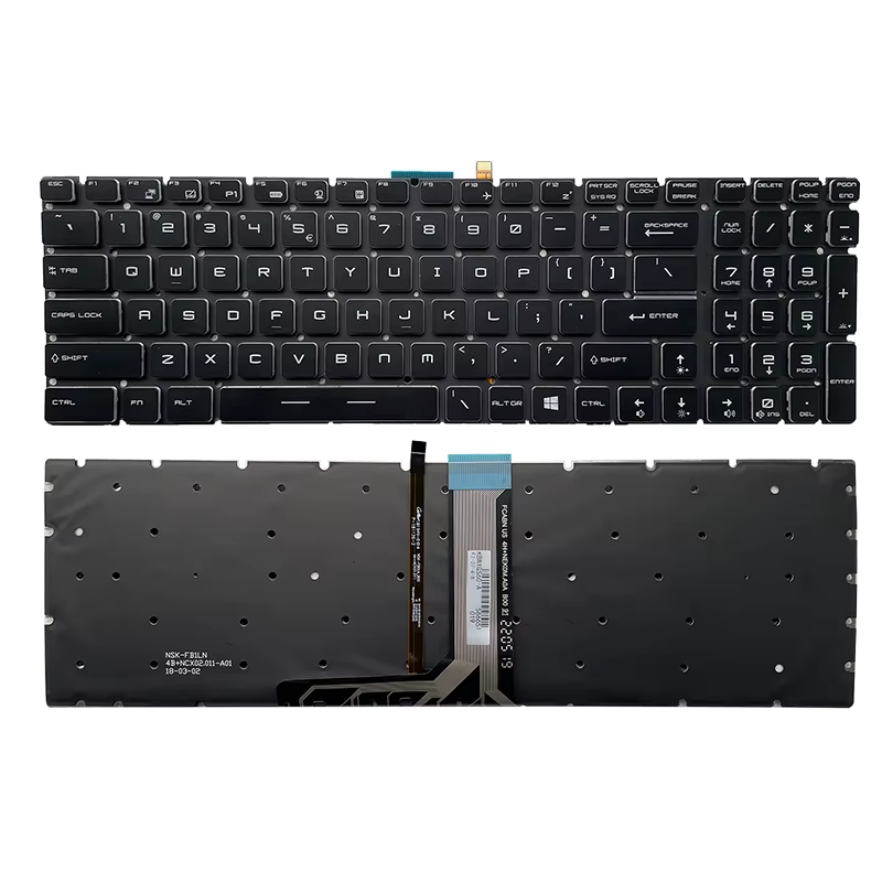 This keyboard features per-key colored backlight illumination, matching MSI’s factory gaming aesthetic. The backlight type varies by specific model — some support single-color (red, blue, or white) and others support zone or per-key RGB. Confirm your original keyboard’s backlight type before ordering.