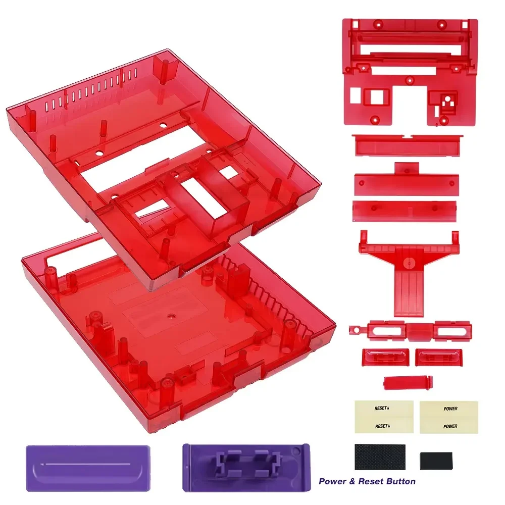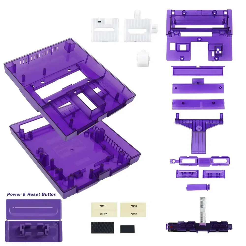 The console, PCB/PCBA board, motherboard, cartridge, controller ports, buttons, and any electronics are NOT included. You will need to transfer the following components from your original SNES shell to the new transparent one: controller ports, power button, reset button, and cartridge slot assembly. All screws, brackets, and structural accessories needed for reassembly are included in the box.